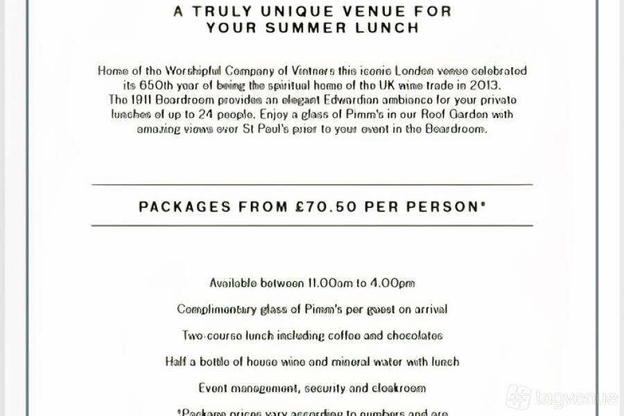 Vintners' Hall is a Tagvenue Partner. This business has registered with Tagvenue and agreed to our venue partner standards.