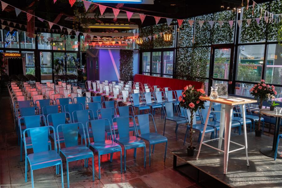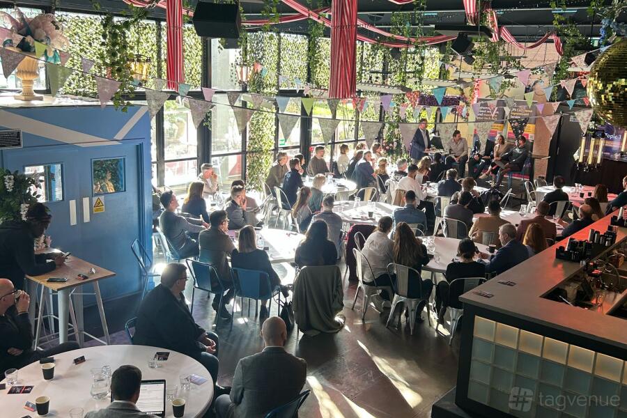 HUCKSTER offers a dynamic and flexible space, featuring a south-facing Sun Terrace and a vibrant, Lower Manhattan-inspired main room. This venue is also located just 2 minutes from Paddington Station and offers a chic, modern interior with neon accents, private breakout rooms, karaoke lounges, and expert cocktail mixologists. HUCKSTER does not carry a minimum spend.
