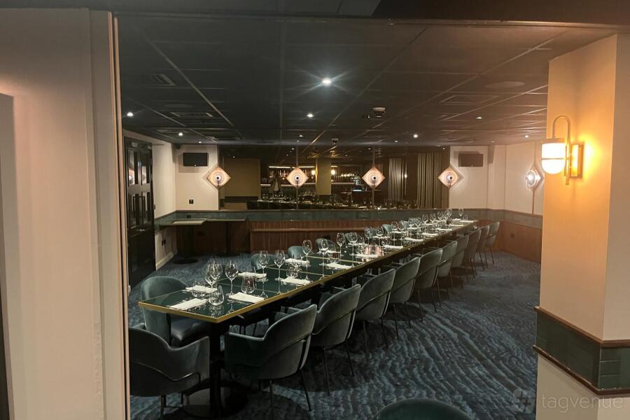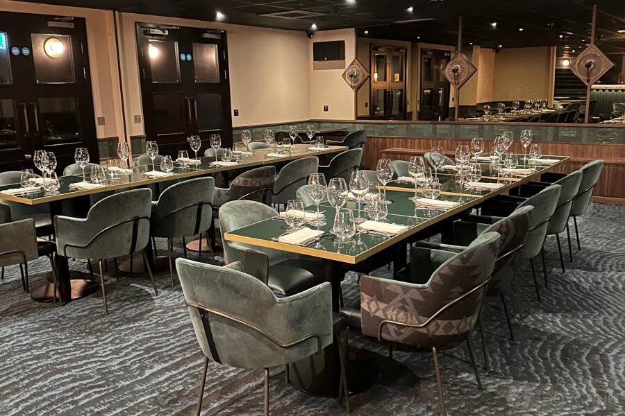 Additionally, our bottom floor boasts a stylish cocktail lounge, perfect for intimate gatherings and socialising. The luxurious furnishings and warm design elements make it an ideal spot for both relaxation and celebration. Its versatile space, tailored to meet your needs, can be split into two private dining rooms and the cocktail lounge.