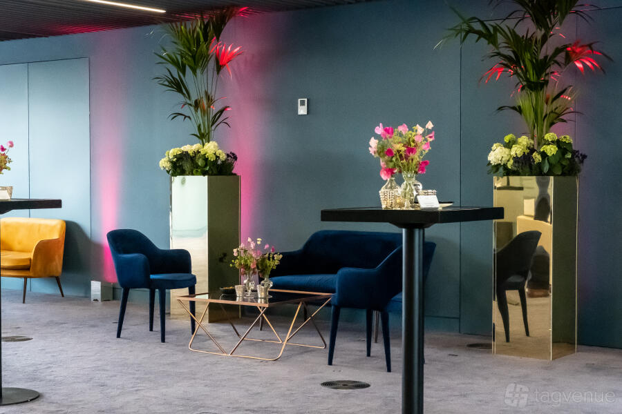 The hire of this room includes fully integrated audiovisual equipment: a brand new 163" OLED wall, stage, lectern, comfort monitor and up to 16 microphones, AV support, an event coordinator, Wi-Fi and blackout blinds.