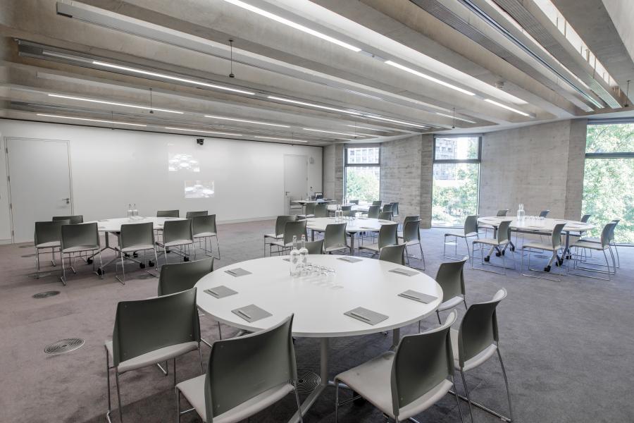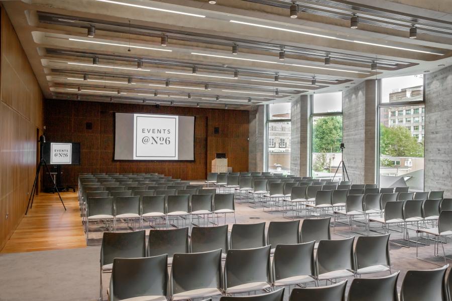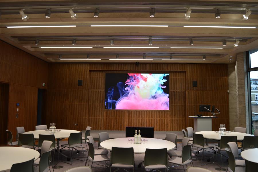 The hire of this room includes fully integrated audiovisual equipment, AV support, an event coordinator, Wi-Fi and blackout blinds.