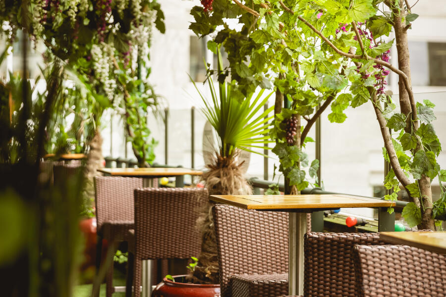 On the first floor the Art Deco-inspired Hine bar and terrace, surrounded by palm trees, serves a definitive range of oysters, Hebridean shellfish, Scottish smoked salmon.