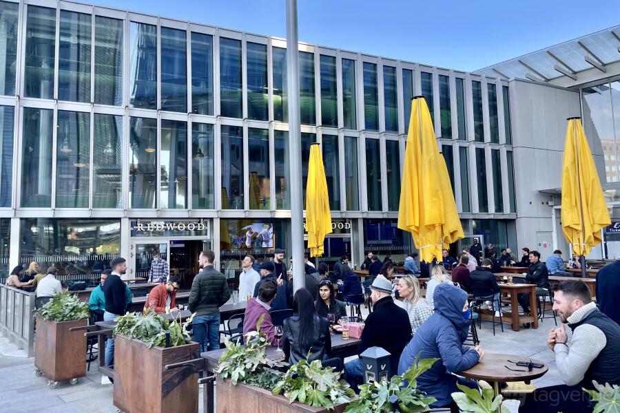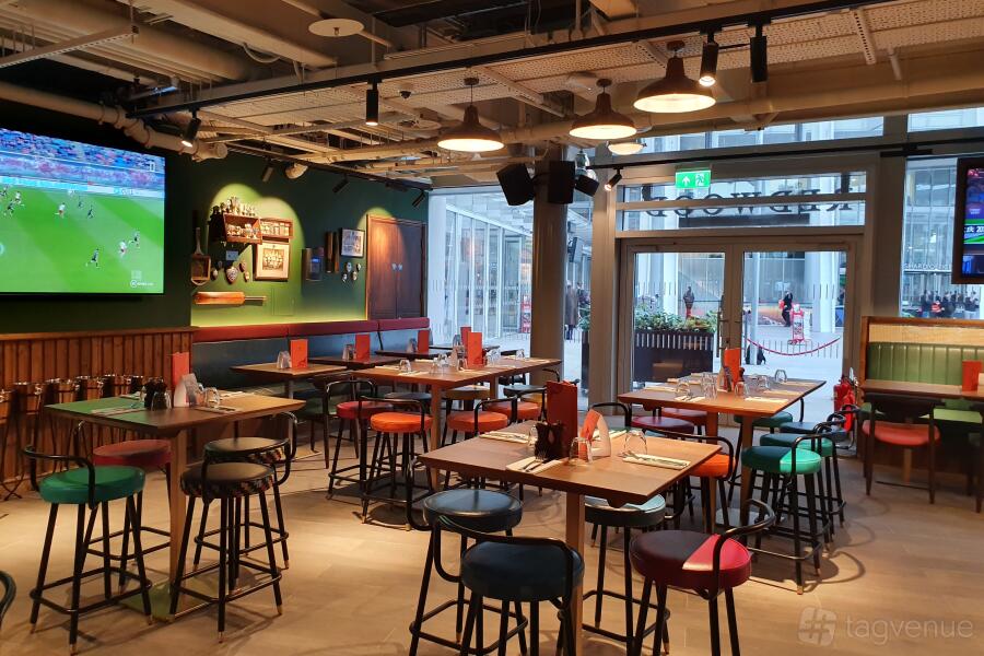Redwood is the ultimate sports viewing destination, perfectly located atop London Bridge Station. With countless ultra-high-definition screens spread over two floors, including a spectacular 145-inch TV wall, you’ll never miss a moment of the action. The atmosphere is electric, with roaring sound and a lively crowd creating the perfect match-day vibe.