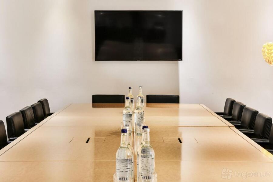 Our modernly designed space has a beautiful painting on the wall, interesting lighting and stunning light-wooden table. The room is fully equipped and makes for a great choice for presentations, team meetings and trainings.