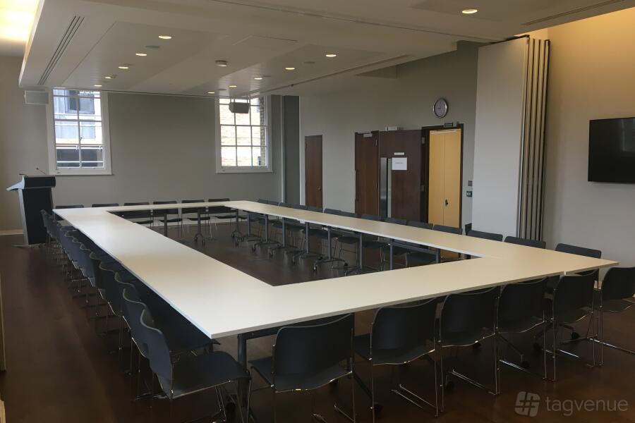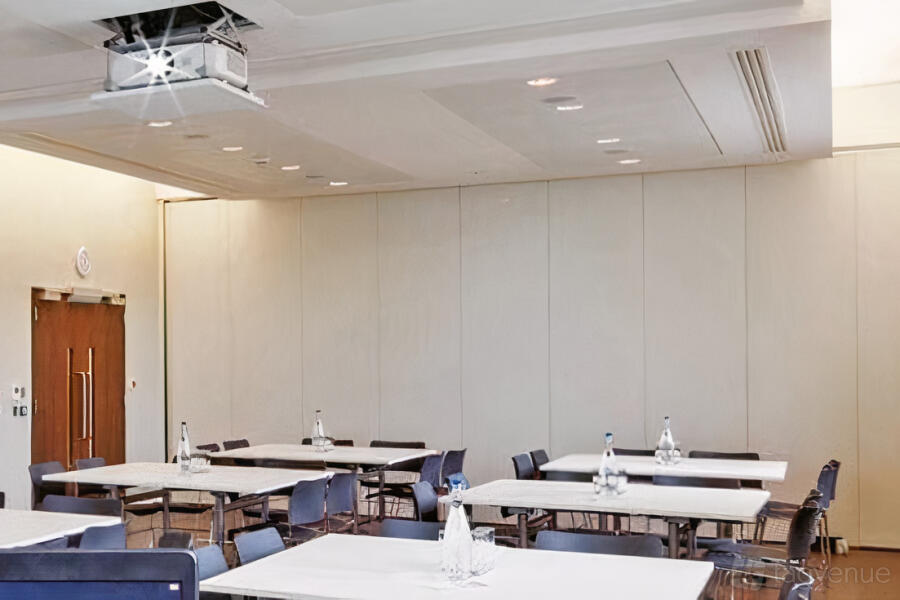 This bright and modern venue space is fully equipped with built-in projector and screen.
