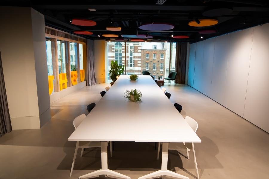 The Tim Berners-Lee Space at HubHub in London features a meeting room designed for up to 8 people. This modern coworking area honors the inventor of the World Wide Web and is created to inspire collaboration and creativity.