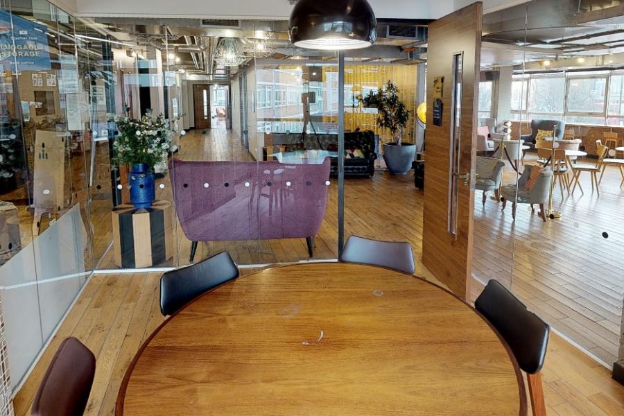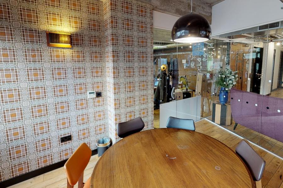 For event organisers seeking a stylish and comfortable meeting space in the heart of London, The East Room at The Trampery offers a unique venue accommodating up to 6 guests. The room has nice wall coverings, a glass table, and leather chairs, creating a distinctive atmosphere for your event.