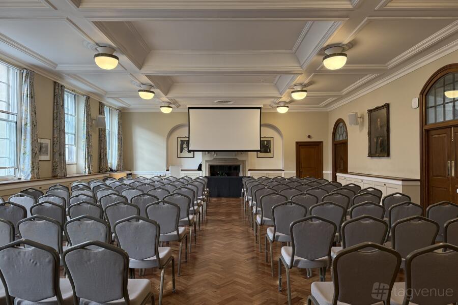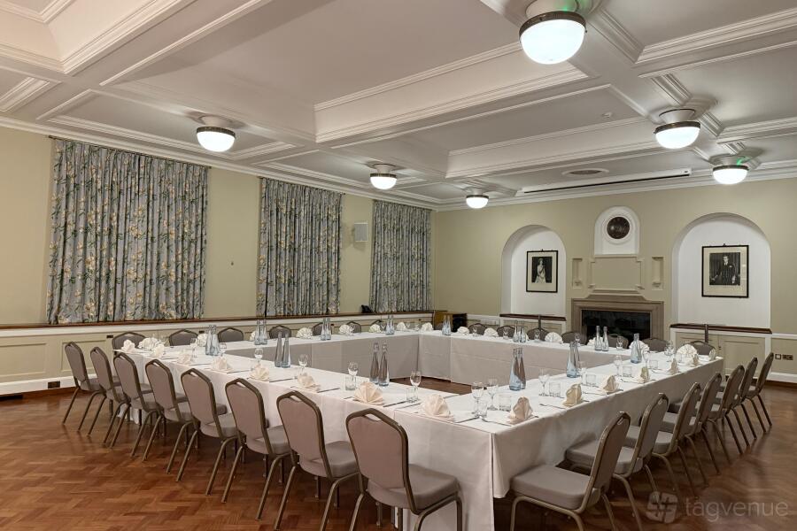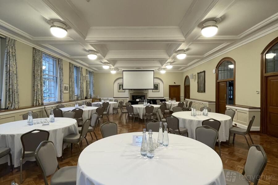 The Large Common Room in William Goodenough House has high ceilings and full length windows on the east and west sides of the room overlooking our beautiful Fountain Quad, flooding it with daylight. Similar to the London House Large Common Room, this room can host a wide variety of events.