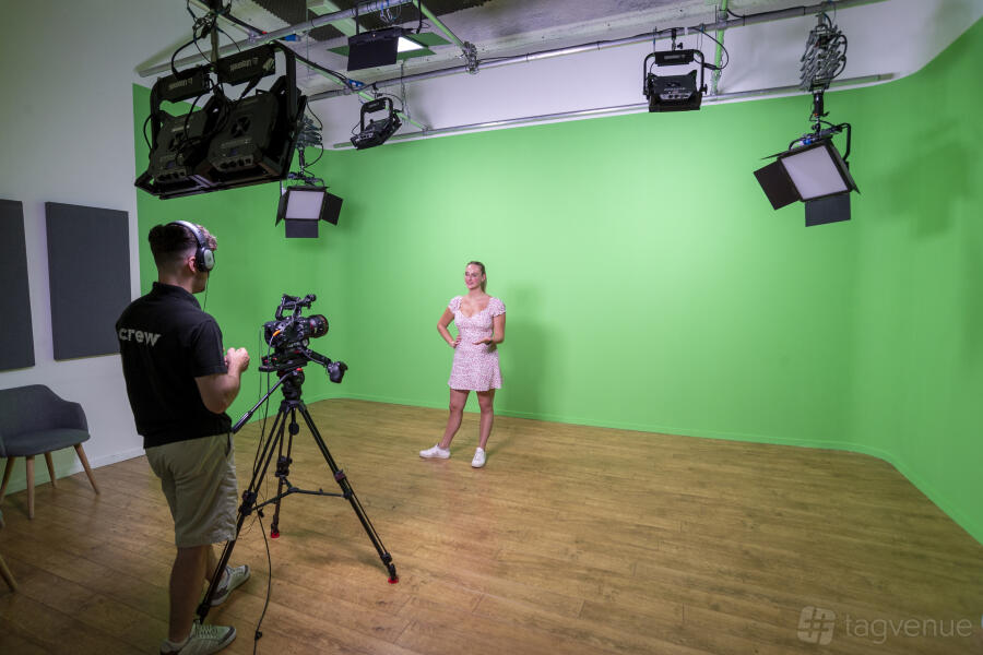 One of our larger studios, Studio 3 is great for bigger shoots. It has large daylight windows, a white infinity cove for shooting, private green room, A/C, free wifi, and direct access to the car park.