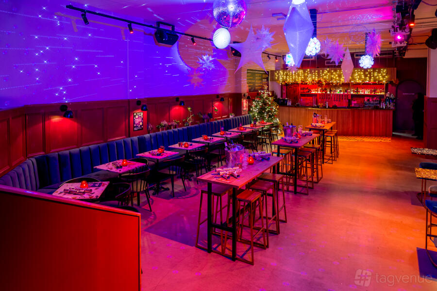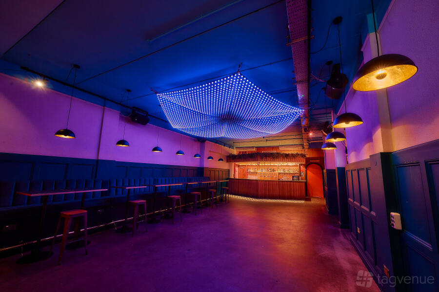 A large 250 capacity room equipped with a bar & excellent lighting/sound capabilities alongside a large raised stage. Perfect for parties with live performances, and daytime conferences.