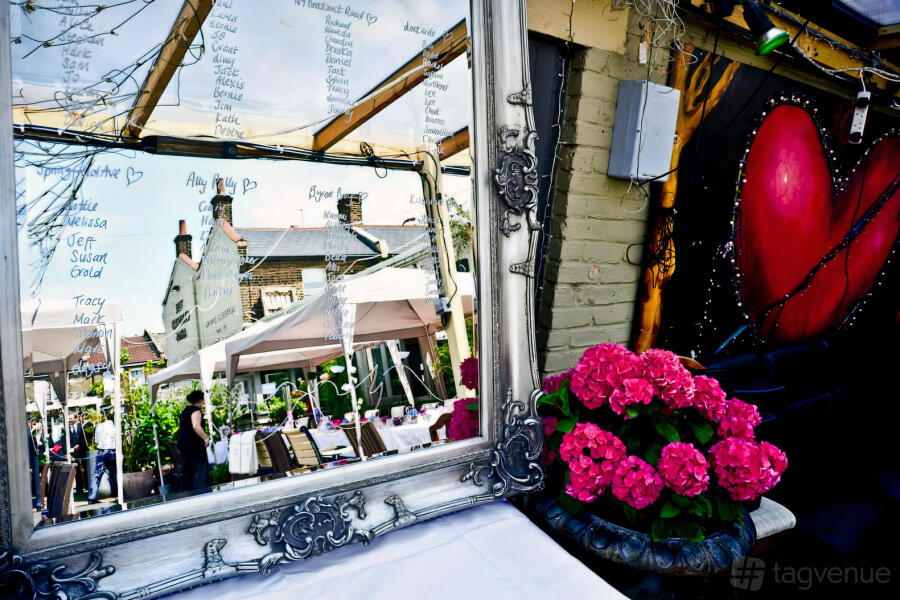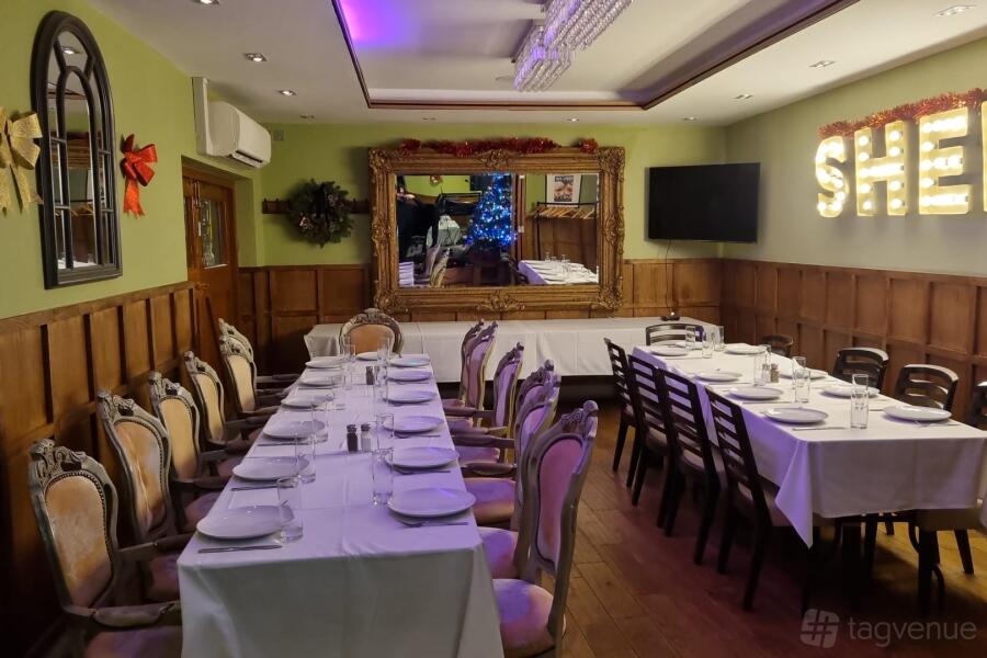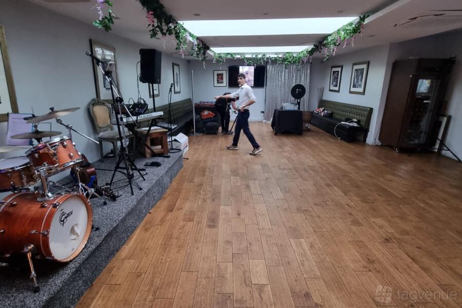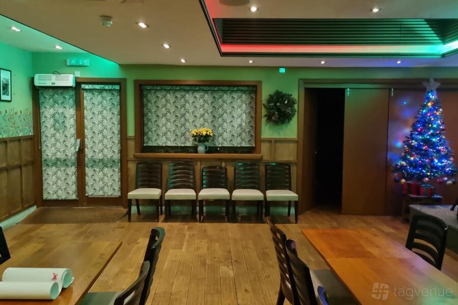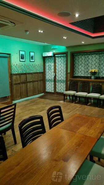 It has a capacity of 65-70 people standing or up to 50-55 seated depending on the layout. It is licensed for music, be a DJ, band or a playlist of your own making plugged into our PA system. It has no direct access to our Patio Garden but does have its own outside area that guests can use. There is also a TV in the room which you can play a slideshow of photographs on through a USB stick or plug a laptop into should you wish.