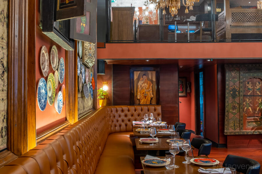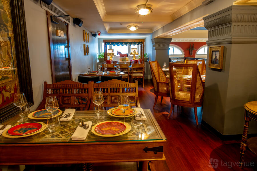 Amidst the historic establishments and buildings of the Holborn locale, one can experience an evening in India. In addition to the restaurant's main space, Colonel Saab offers extraordinary and opulent private dining rooms with decor depicting stories of India from a bygone era. such as Maharaja Bhupinder Singh and his 900 wives.