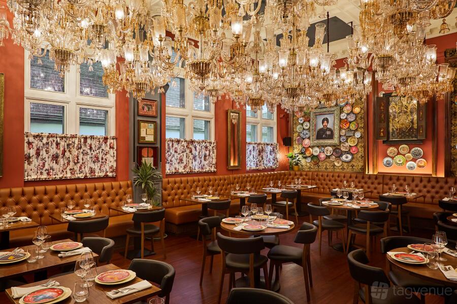 Amidst the historic establishments and buildings of the Holborn locale, one can experience an evening in India. In addition to the restaurant's main space, Colonel Saab offers extraordinary opulent private dining rooms for up to 60 guests, with decor depicting details of interesting stories of India from days gone by, such as Maharaja Bhupinder Singh and his 900 wives. Guests can also hire the mezzanine which looks over the main restaurant and makes a great space for an intimate gathering for up to 30 people.