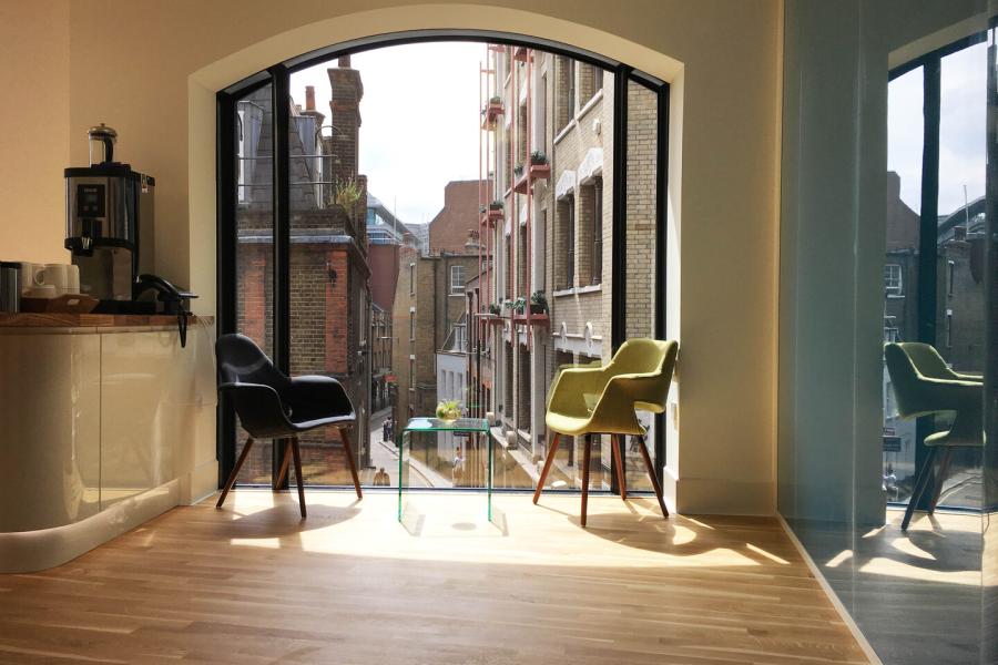 Just a 2 minute walk from the transport connections of Liverpool Street station and the bustling street markets of East London, Wallacespace Spitalfields has a retro, space-race theme running through the building, from the vintage space posters to the blue, polycarbonate interior walls, which let light flood into the spaces but still allow plenty of privacy.