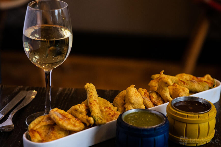 With a spacious 145 square feet of outdoor space and a ceiling height of 20 feet, the terrace accommodates up to 80 guests in a reception-style setting. The central bar serves a selection of refreshing cocktails, fine wines, and chilled beers, keeping guests refreshed throughout the event. For private bookings, live music or a DJ can be arranged, enhancing the ambiance.