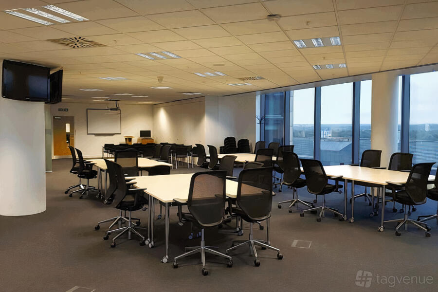 Elevating the overall experience, a private mezzanine area nearby provides an excellent space for refreshments and networking opportunities. Immerse yourself in a professional and comfortable setting, where each detail is carefully tailored to facilitate seamless presentations and foster interactive sessions. The combination of modern amenities and thoughtful design creates an environment that encourages collaboration and enhances the overall quality of your events.