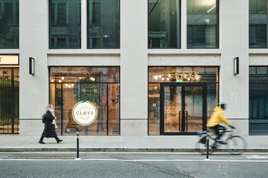 Clays main bar area can accommodate up to 300 standing guests for a semi-private hire and unforgettable event experience. Greeted at the door by their event host, your guests can enjoy a welcome cocktail before heading to the pegs to the shoot some clays. Enjoy world-class technology in an incredible setting, with each peg (booth) housing a real shotgun, a 4 metre-wide 4K screen to play the game on and an extensive food and cocktail list available to order.