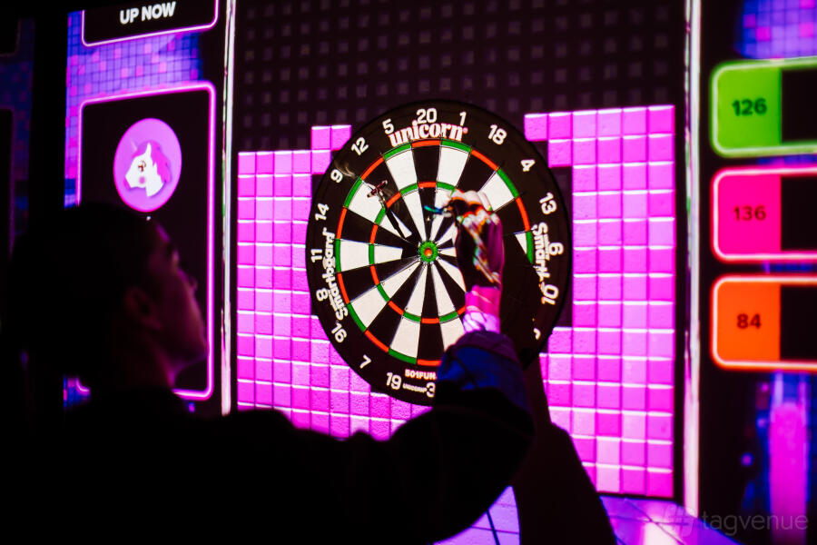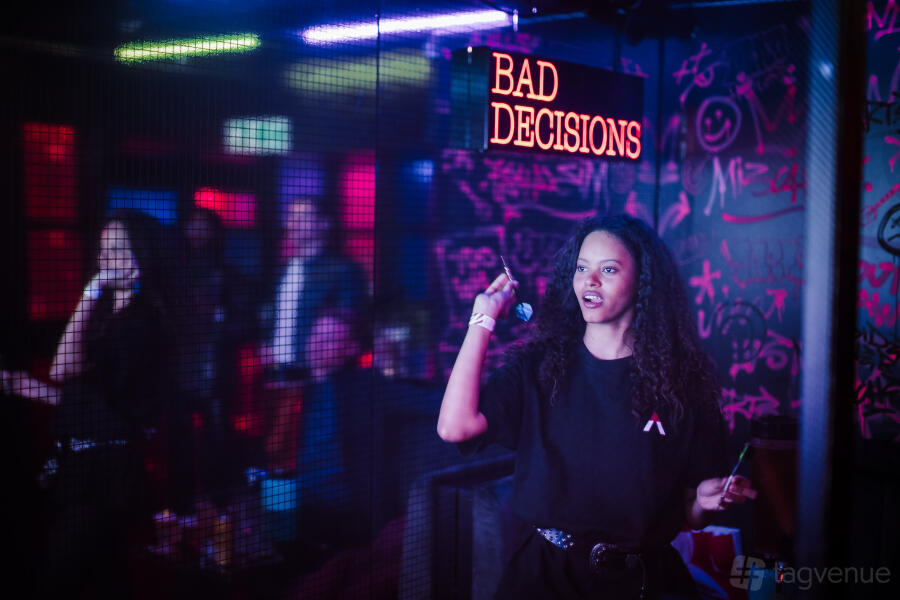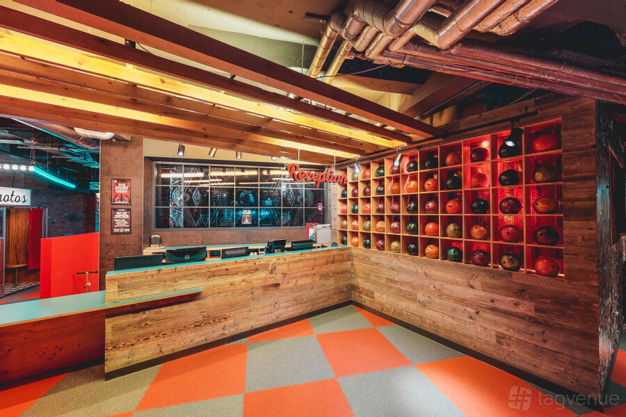 The five super slick, trippy, geometric ruby-red VIP bowling lanes are perfect for interviews, photoshoots, filming and all media options alike.
