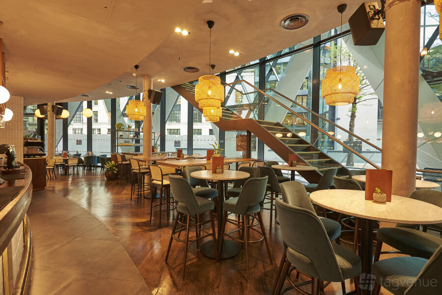 The Gherkin stands out as one of the most iconic skyscrapers in the heart of the City of London. Nestled on its ground floor lies The Sterling, a dynamic bar and restaurant that caters to a myriad of occasions. Whether you seek a casual gathering for after-work drinks, a professional setting for meetings, the ideal venue for corporate events, the elegance for wedding receptions, or a memorable space for special occasions, The Sterling offers versatile options. From intimate work lunches to lavish dinners, our revamped spaces are meticulously designed to elevate your upcoming events.