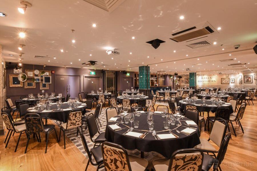 Set just off Mincing Lane, the host of the City's lunches and private events Balls Brothers Minster Court is the perfect venue to host your corporate event. They provide multi functional event space for a variety of hospitality occasions alongside a restaurant and bar across two floors. Their multi-functional rooms provide a private entrance, toilets and a cloakroom. They can host full sit down lunches or dinners for up to 220 guests. Their flexible layout can provide theatre, cabaret or boardroom meeting styles.