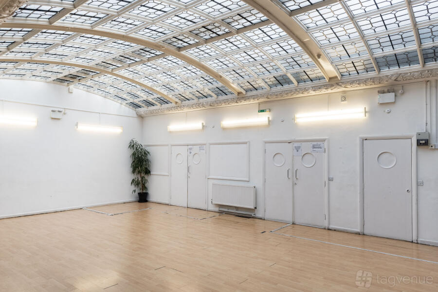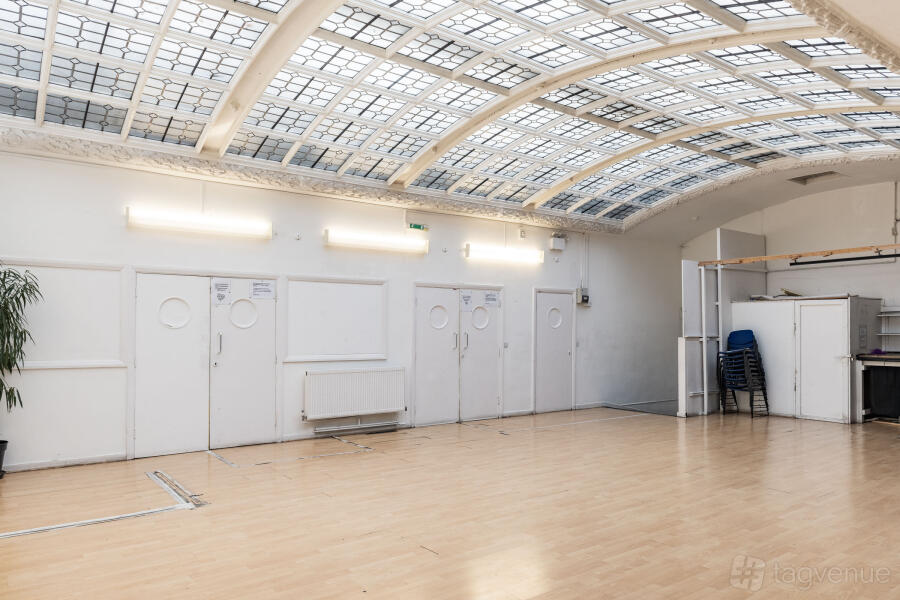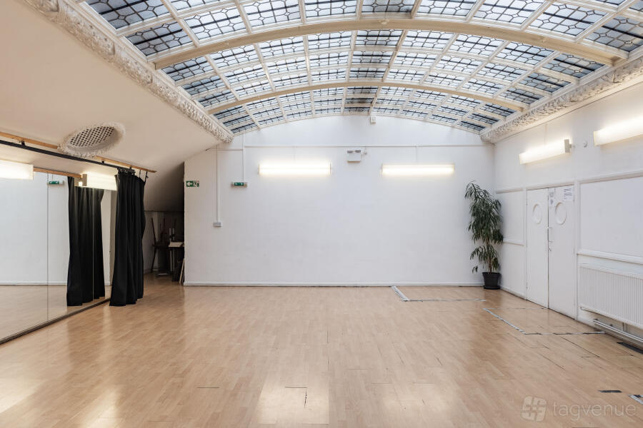 Our bright and light blue room is the perfect space for meetings, interviews, rehearsals and small workshops, with its amazing natural light from the Edwardian glass skylight.