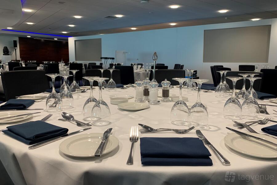 The Directors’ Lounge is a premium versatile space within the stadium and features a stunning velvet banquette-seated reception area before a sumptuous banqueting experience with stunning décor in our directors’ dining area. The Directors’ Lounge can accommodate up to 48 for dinner and will create a truly unforgettable event.