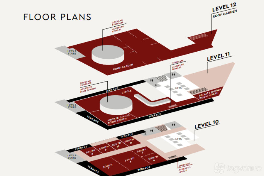 This floor features four individual rooms with capacities of up to 10 guests, perfect for a small dinner or meeting with views across the Thames.