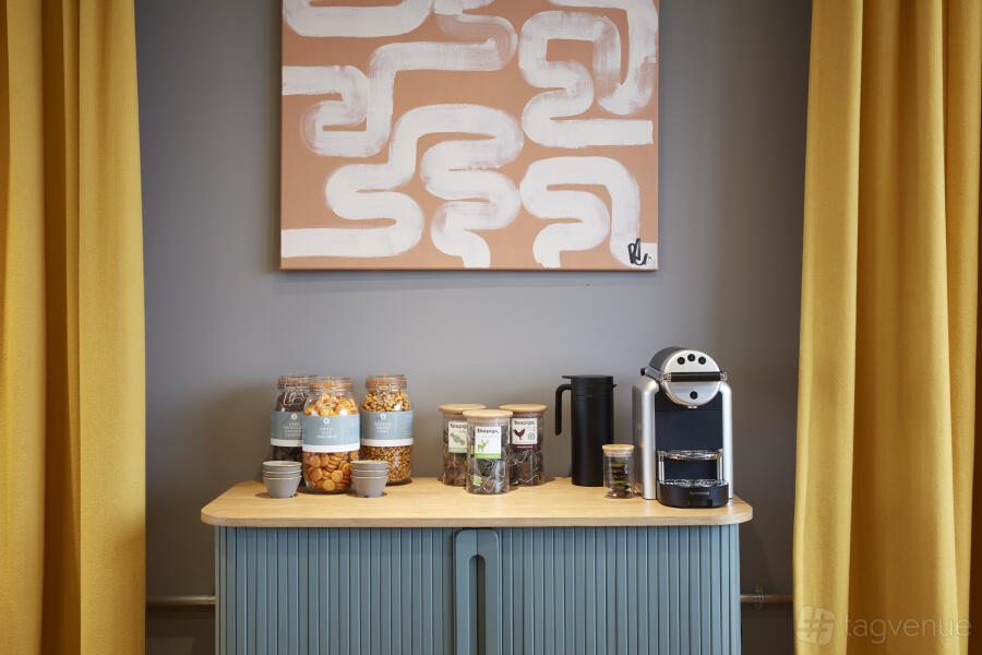 Lovely 8-person meeting room with screen, Crestron video conferencing system, and whiteboard provided. Comes with access to a shared roof terrace and views of Alexandra Palace. A variety of flavored teas and Nespresso coffee are provided in the room, along with healthy snacks and water. Whether you need the room for 1 hour or the full day, this room is set to impress!