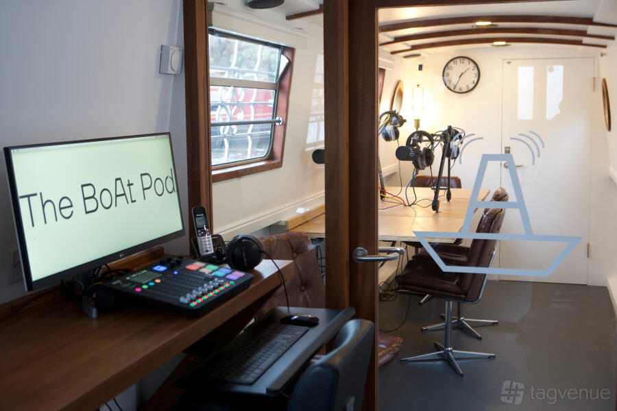 We are a floating podcast and DJ studio on a boat based in Little Venice, Paddington. Equipped with the best podcasting and DJ equipment, including Shure microphones, Rodecaster, and technics. We can also record video, with up to 3 cameras in both studios.