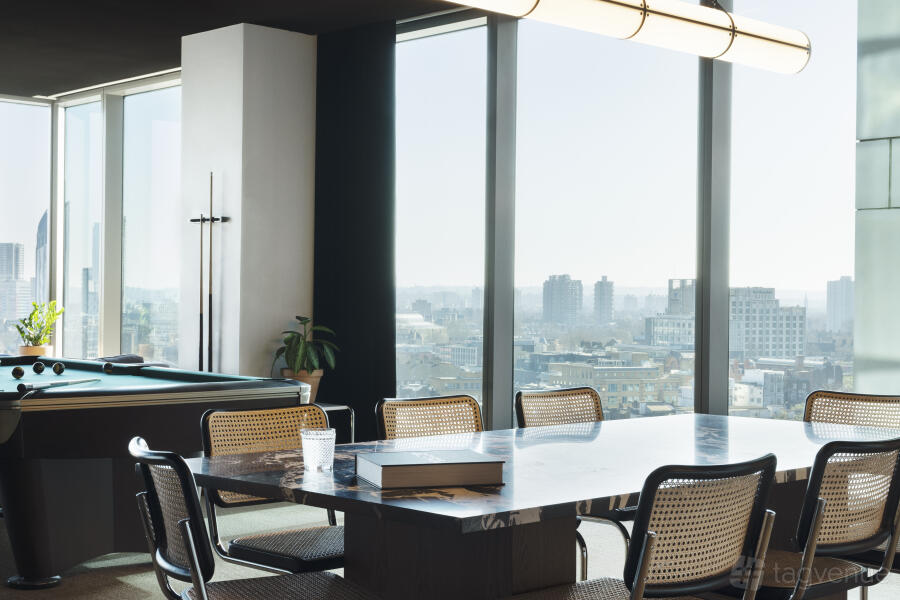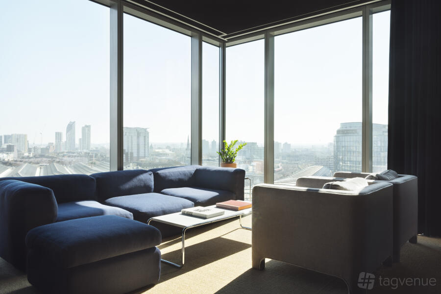 In the day, natural light floods the double-height space, making way for sunsets on the terrace and the lights of London over the river. The space is made to be flexible, with a range of furniture options, a fully stocked bar, pizza oven and a beautiful breakaway area behind the bar, with expansive views. The 16th Floor can be transformed to create a number of spatial environments and events, from receptions and seated dinners to conferences and product launches.