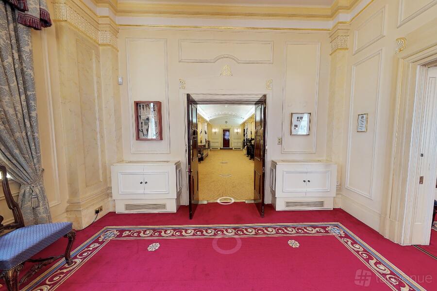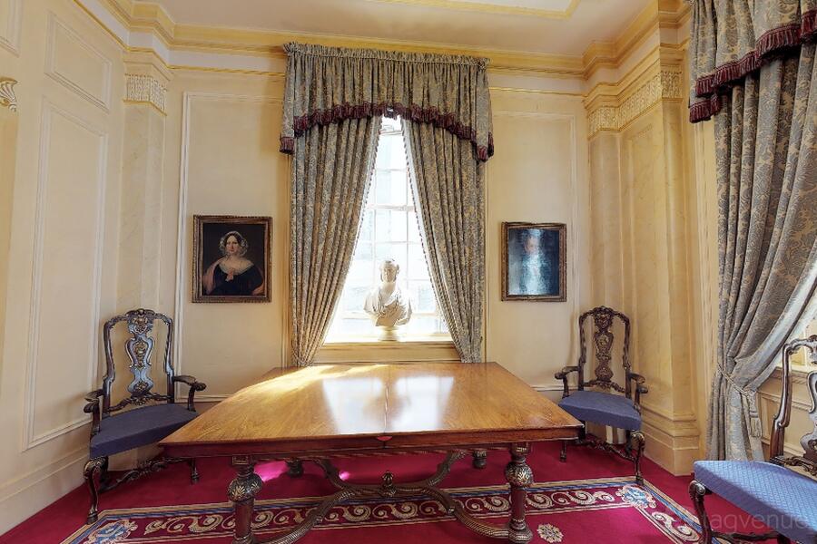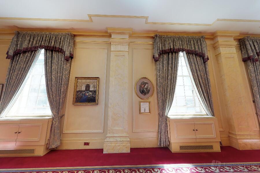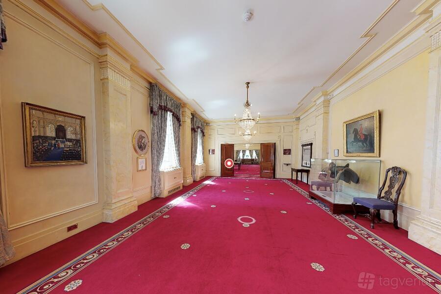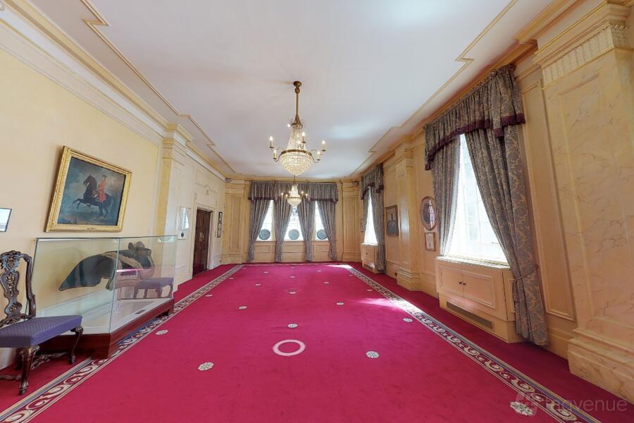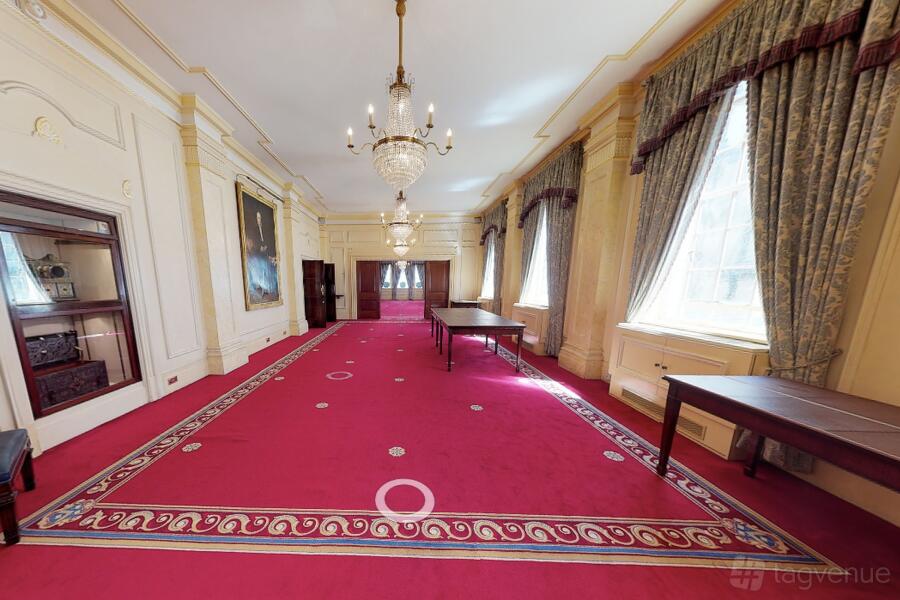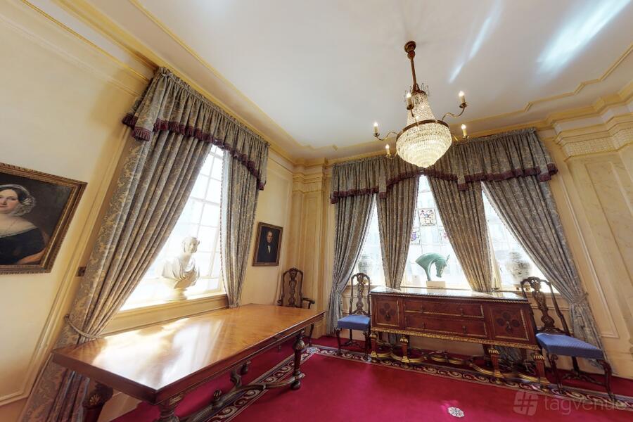 The Great Hall, with exquisite stained-glass windows and a musicians' bespoke gallery is a perfect space for grand gatherings. Five chandeliers and period mouldings add to the feeling of opulence in the room.