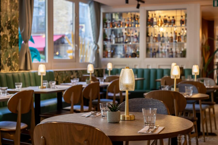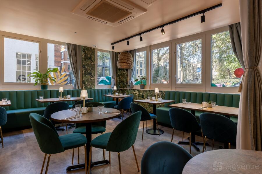 Split into two areas - an upstairs restaurant with a seated capacity of up to 66 people, and a downstairs bar, available for private events of up to 120 people.