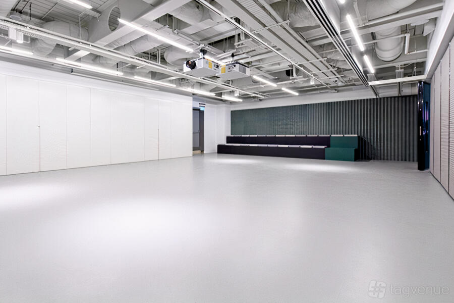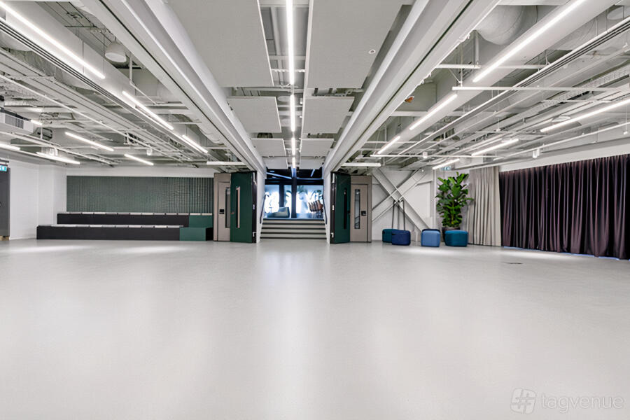 Downstairs, there’s a large and flexible event space with seating for up to 200 that can be dressed or configured to suit any event – or divided into two workshop studios, perfect for training or presentations.