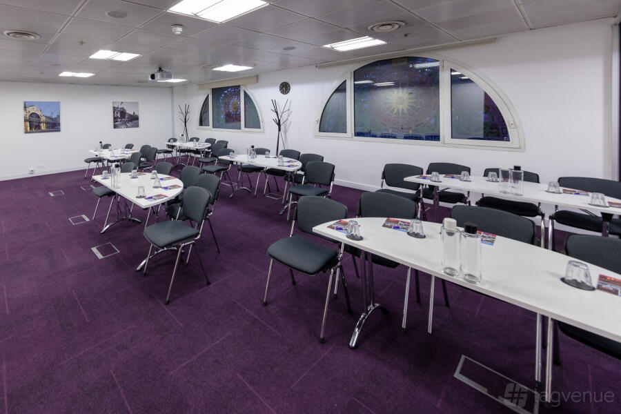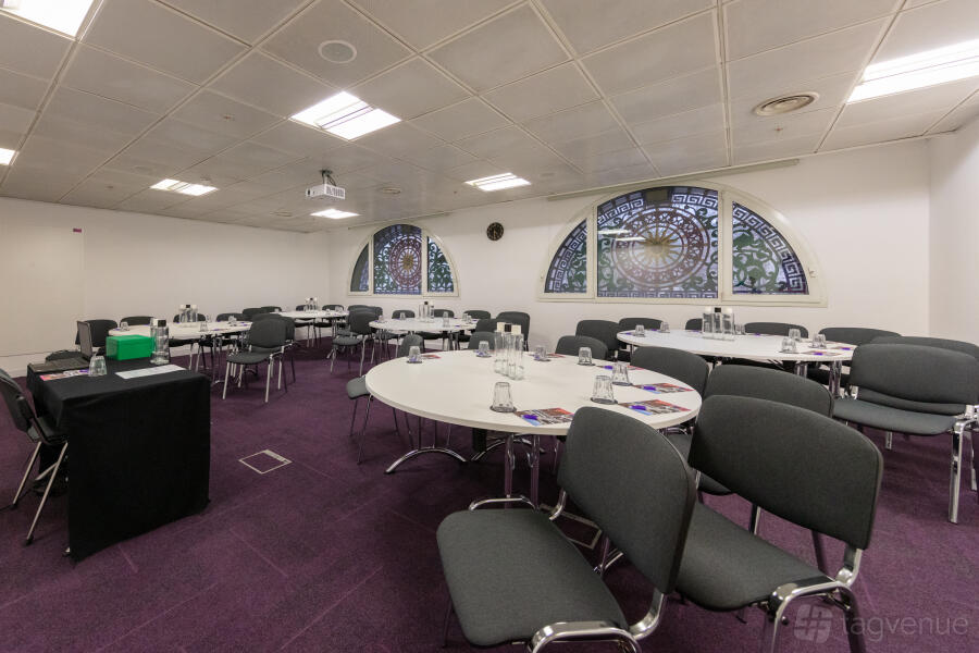 Spitalfields is an ideal space for large meetings, training events, and conferences of up to 70 people. The meeting room is a regular shape with inbuilt audio-visual equipment and dedicated onsite support. It also boasts excellent free-of-charge Wi-Fi (1GB), air conditioning, natural daylight, and good soundproofing. Refreshment stations are conveniently located nearby. The venue is complemented by an open plan reception, lounge, and restaurant.