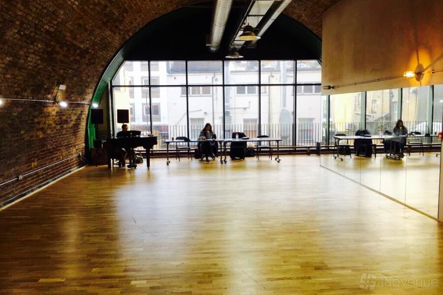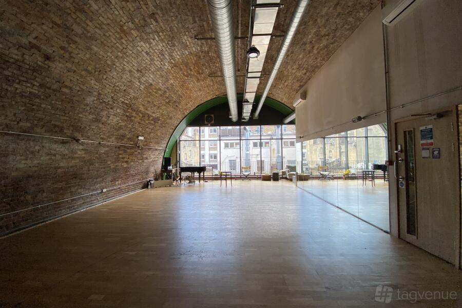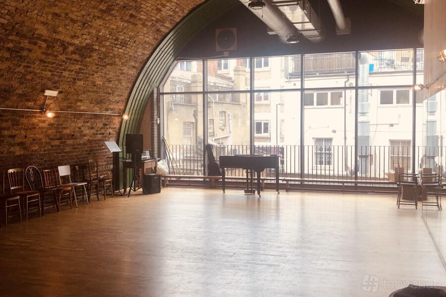 A wooden floored dance studio, a brick walled event space and a bar with kitchen and courtyard.
