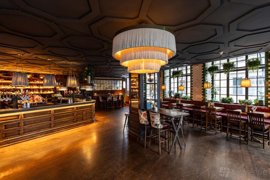 Speakeasy style bar, privately hired, not disabled friendly as unfortunately no lift. Trestle tables can be added to seat up to 80 and hold 100 standing or furniture (minus booths) can be removed for extra room.