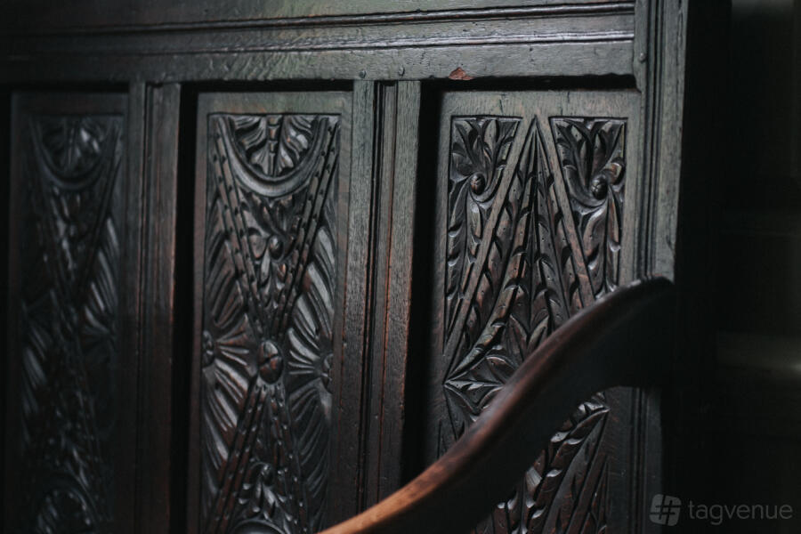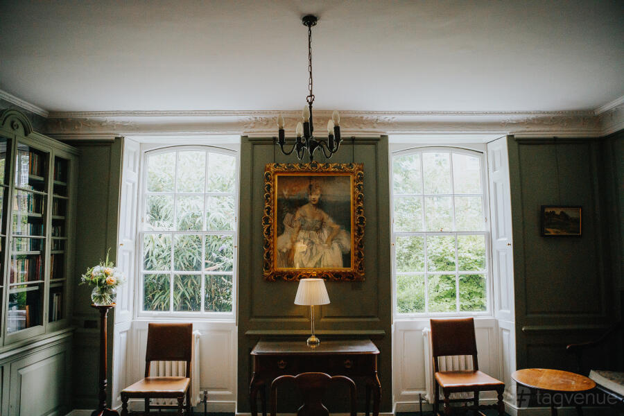 A warm wood panelled room, with Georgian stripped pine walls reclaimed in the 1920s from the now demolished long room of Hampstead Spa. A beautiful space that is licenced for weddings and features a lovely 1925 baby grand Bluthner piano in its bow window by french doors to a private courtyard.