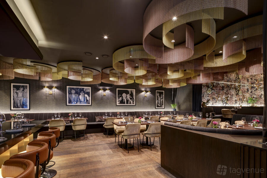 As you step into the room, you will be enchanted by its opulent and stylish decorations. The ambiance exudes a sense of refined luxury, combining modern elements with classical touches. The carefully curated furnishings, tasteful artwork, and ambient lighting create an inviting and vibrant atmosphere that sets the stage for an unforgettable dining experience.