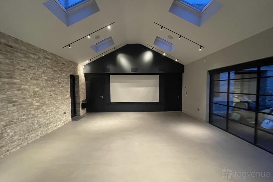 Large sliding windows, span most of the garden-facing side of the house, so that light spills in no matter what the weather and allows nature to be its backdrop. We have a shooting Studio which opens up to the driveway on one level, perfect for off loading kit.