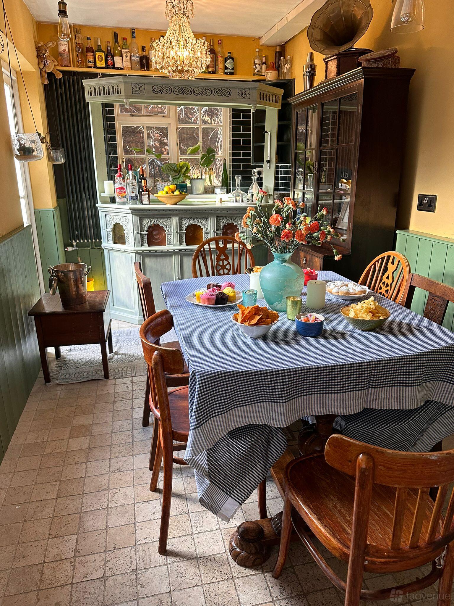 • Colorful orangery space facing a beautiful back rear garden, with a mid-century pub’s bar and lots of flowerpots, offering stunning views – ideal for social media and commercial brands photoshoots.
