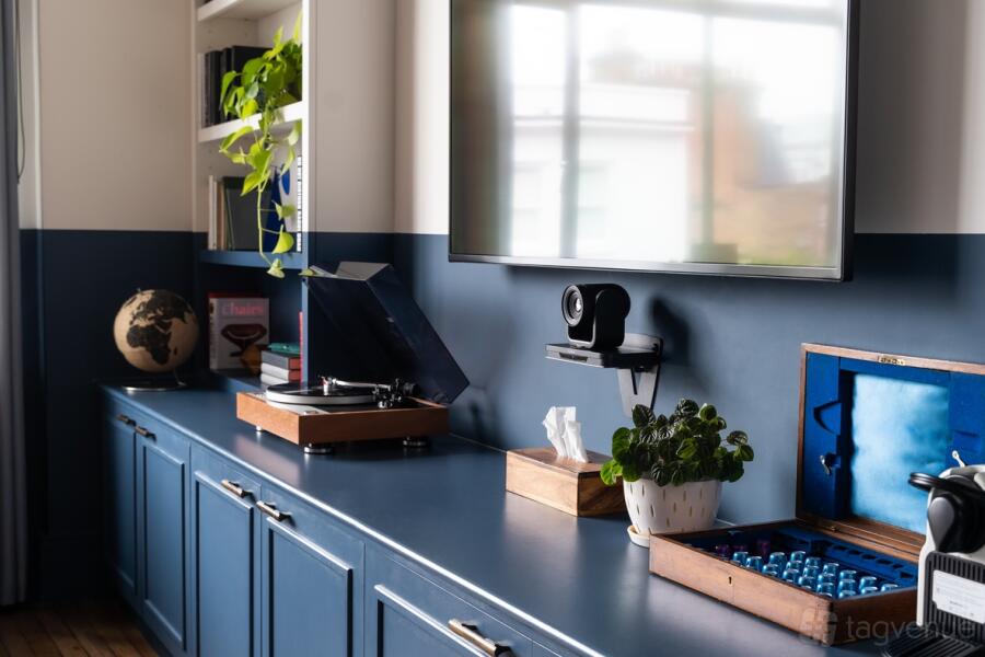 This beautiful space is well-equipped for video conferencing, offering all the necessary features to facilitate virtual meetings.