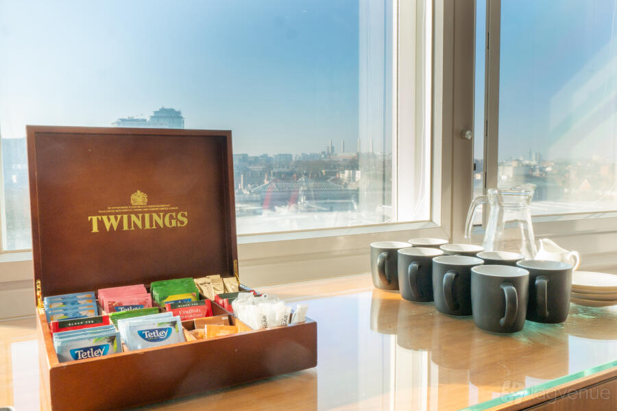 With panoramic views of the River Thames, the 16-seater meeting room in Millbank Tower strikingly blends functionality and contemporary design.