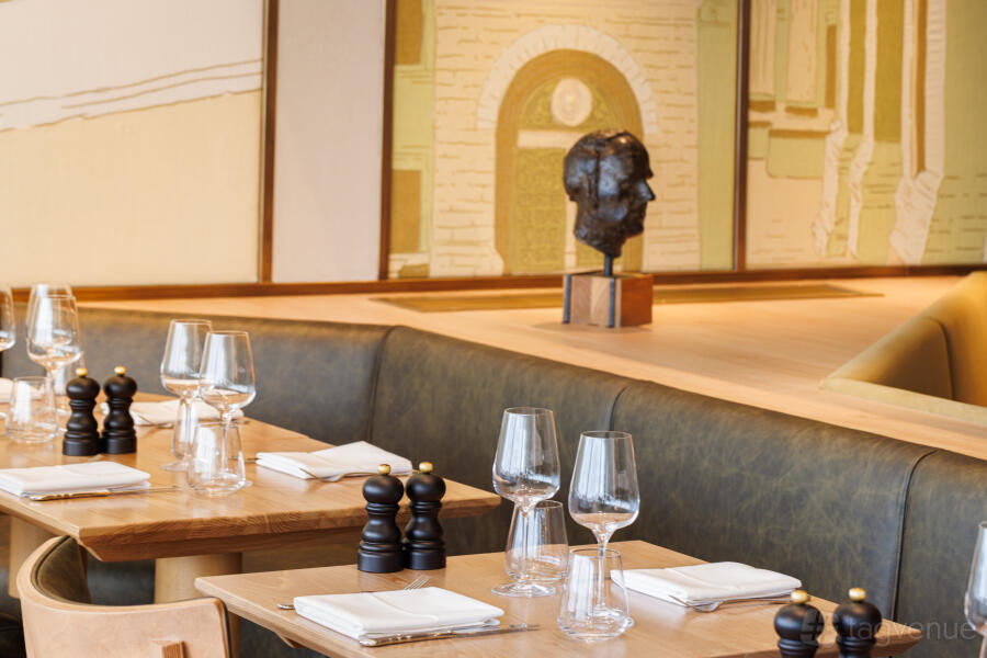 Light and airy, the restaurant’s colour palette of the restaurant highlights shades of heritage green which compliments the colours chosen throughout the Gallery spaces. De Gournay, a British brand famed for its hand-painted wallpapers, created custom bespoke hand-sewn fabric panels, illustrating the outlines of the iconic building exterior. The National Portrait Gallery team have curated a collection of five sculptures scattered across The Portrait Restaurant.