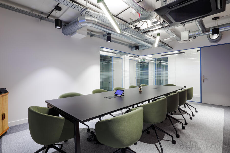 The meeting room includes high-speed, secure Wi-Fi for calls and presentations, AV and video conferencing equipment.