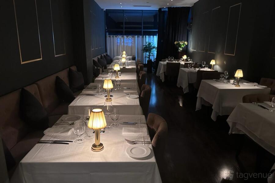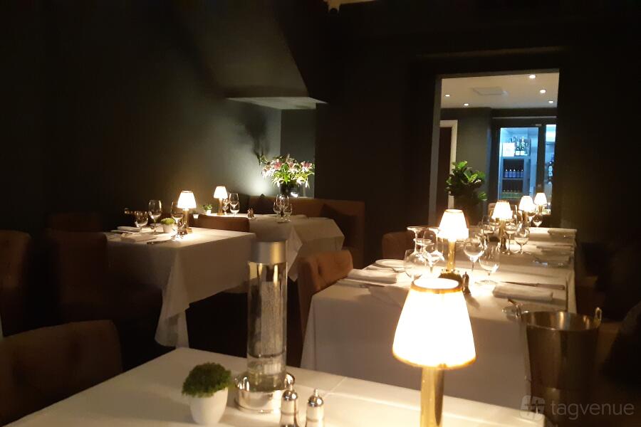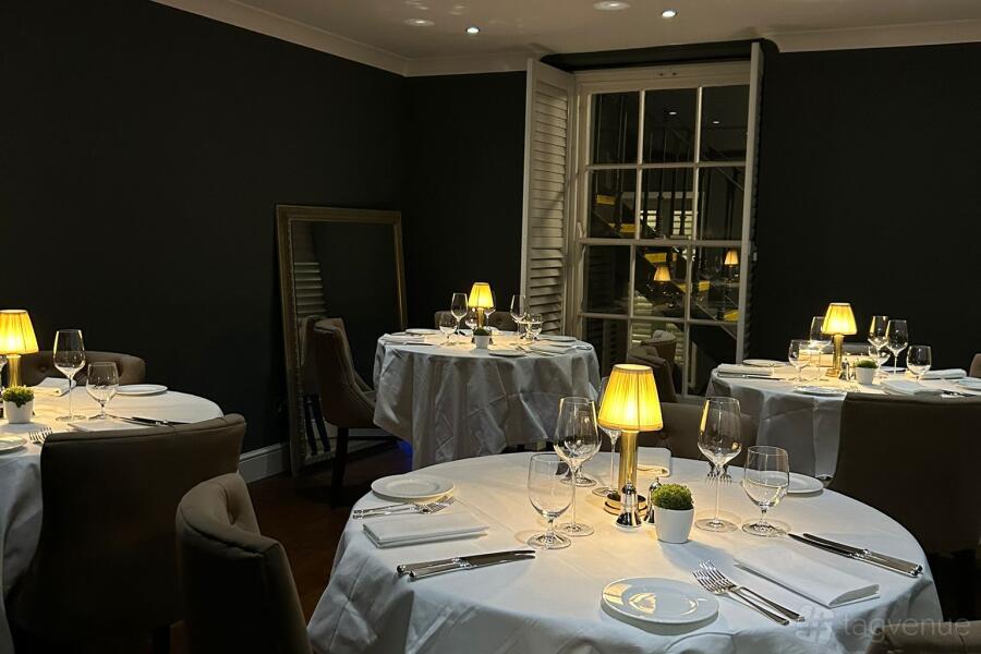 The private room is on the lower ground floor of the restaurant seating 20 guests. The room faces a large sash window overlooking a small courtyard and has its own high-spec rest room.