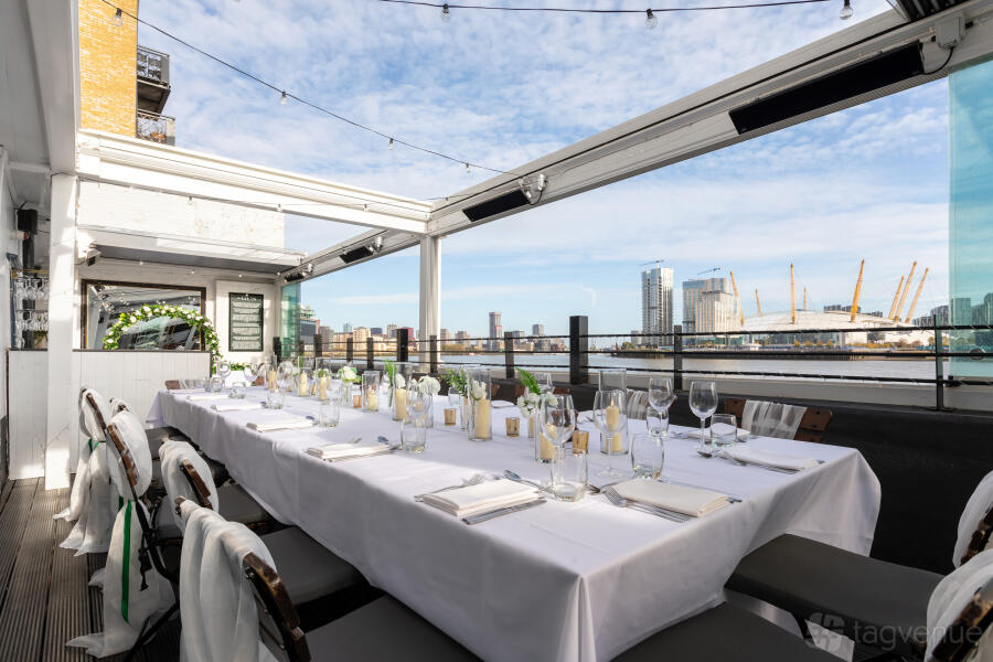 Our stunning Riverside Garden, which features a private bar and breath-taking views of the O2 Arena and the River Thames, is the ideal space for a private event.