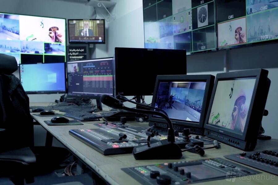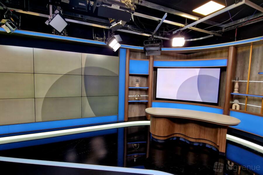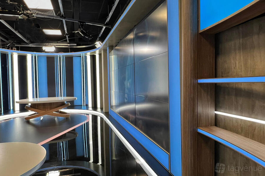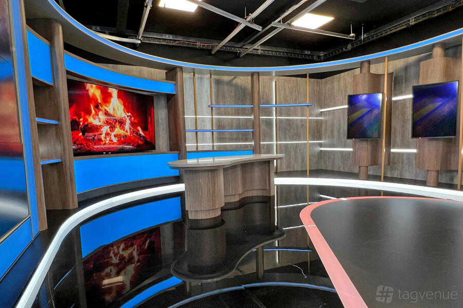 The lighting setup includes LED studio lighting controlled by a DMX-512 lighting console, a dynamic ceiling studio lighting grid, and a digital audio mixer. The audio capabilities are further amplified by eight wireless neck microphones, six podcast microphones, and two in-ear monitors. This comprehensive package ensures a seamless and professional broadcasting experience for various production needs.