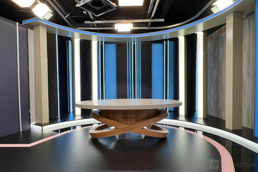 Available for daily and hourly rent in London, this fully equipped live TV studio spans 900sqft, complemented by a 180sqft gallery control room. The studio features four Sony HSC 100R cameras with professional CCU, supported by four pedestal tripods equipped with robotic heads. An Auto-Q system enhances efficiency during productions.