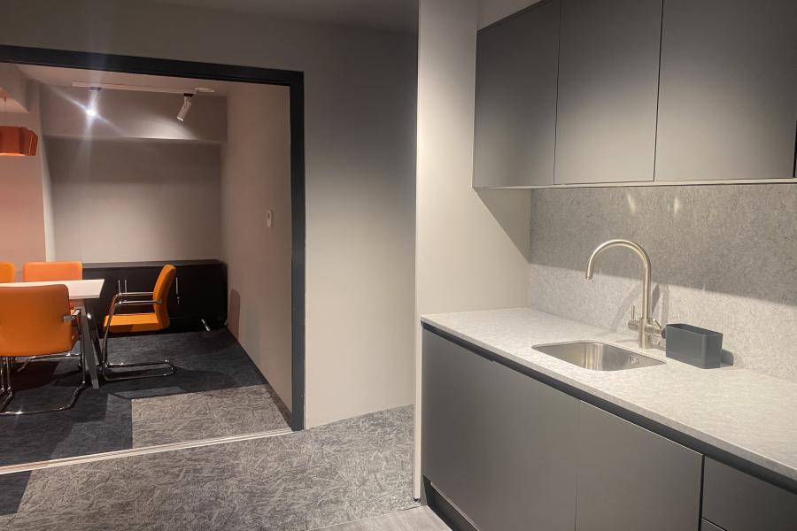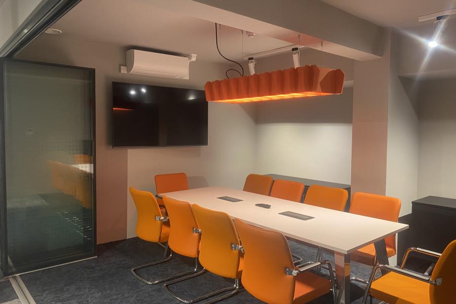 Our building features two 10-person meeting rooms, each equipped with a wall-mounted TV for seamless device connectivity, as well as air conditioning and heating for comfort. A shared tea point is located just outside the rooms, where you can enjoy complimentary refreshments.