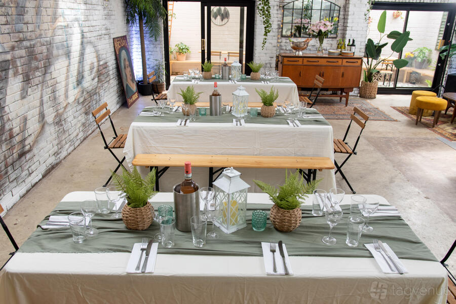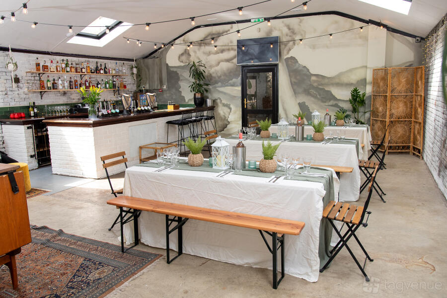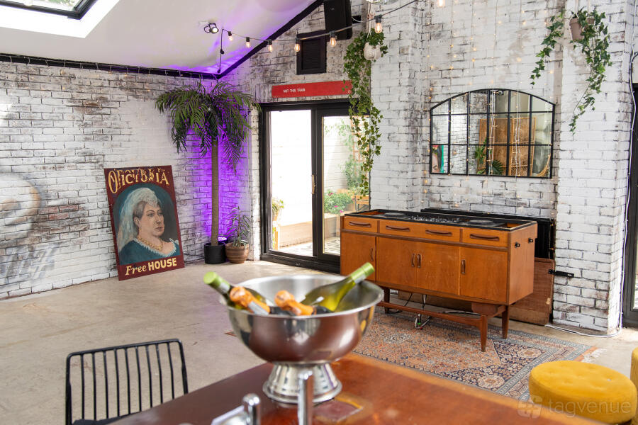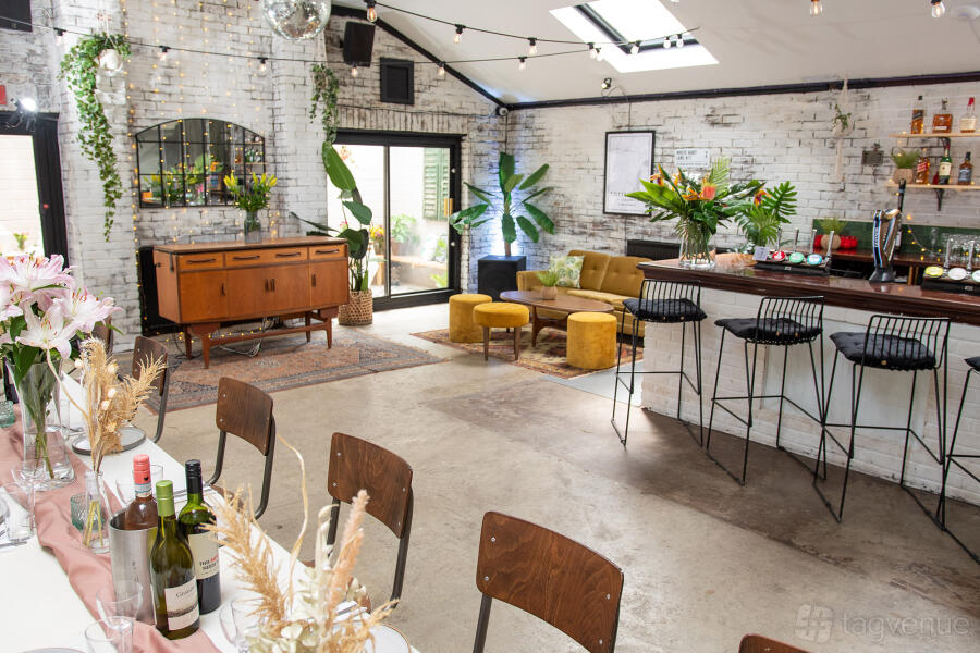 From the pub, a small corridor leads directly into the Clubhouse event space and a private terrace. The Clubhouse has a warehouse aesthetic and drenched in natural light. This space comfortably holds up to 100 standing or 35 seated. The space features a second bar, DJ booth, TV screen, party lighting (including mirror ball) and access to the private terrace which is partially covered and has seating for up to 20 guests.
